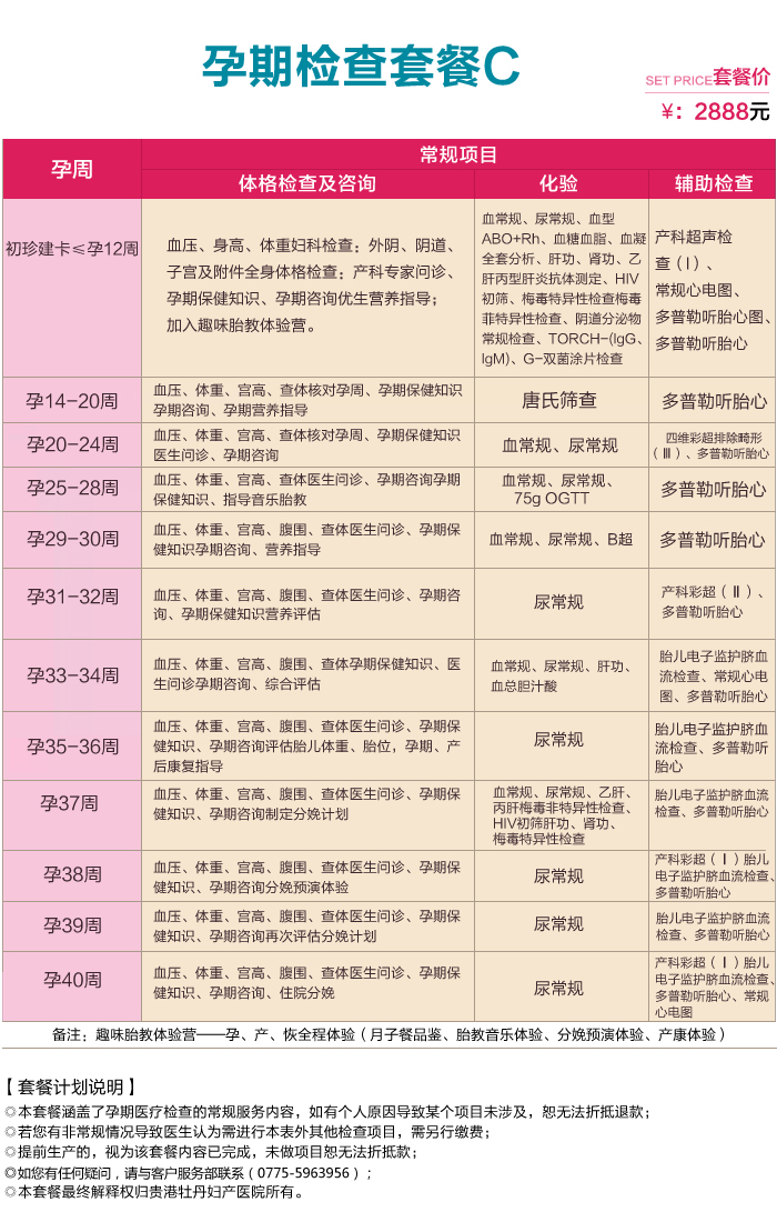 孕期检查套餐C