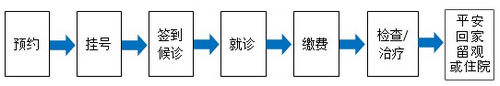 预约-挂号-签到候诊-就诊-缴费-检查/治疗-平安回家或住院