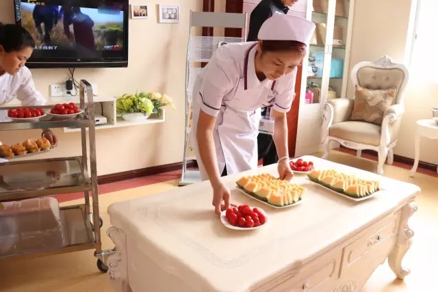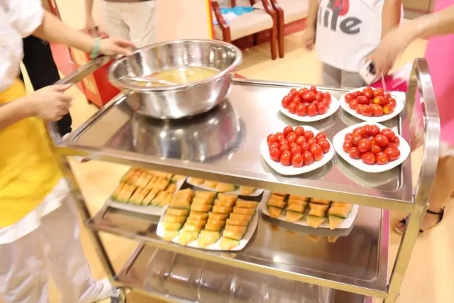 (牡丹月子厨房为参观的朋友们准备了水果、为孕妈们准备好了月子营养汤)