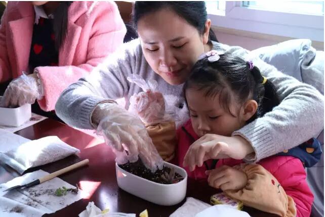 (现场制作非常认真啊,种属于自己的绿植,看着它一天天长大。这是一件多幸福的事啊,就如孕育宝宝一样,需要我们的爱心、耐心)