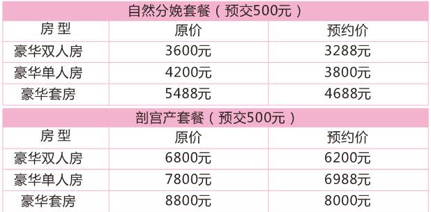 预定分娩豪华房(预定金500元):