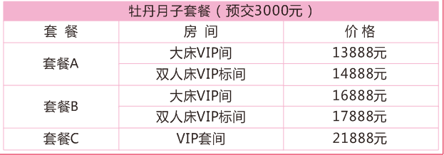 预定月子套餐(预定金3000元):