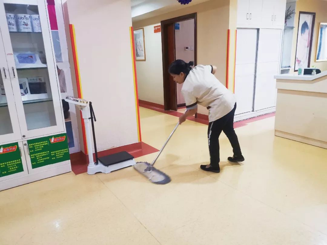 ▷ 保洁人员认真仔细地打扫卫生,保持我院干净整洁。