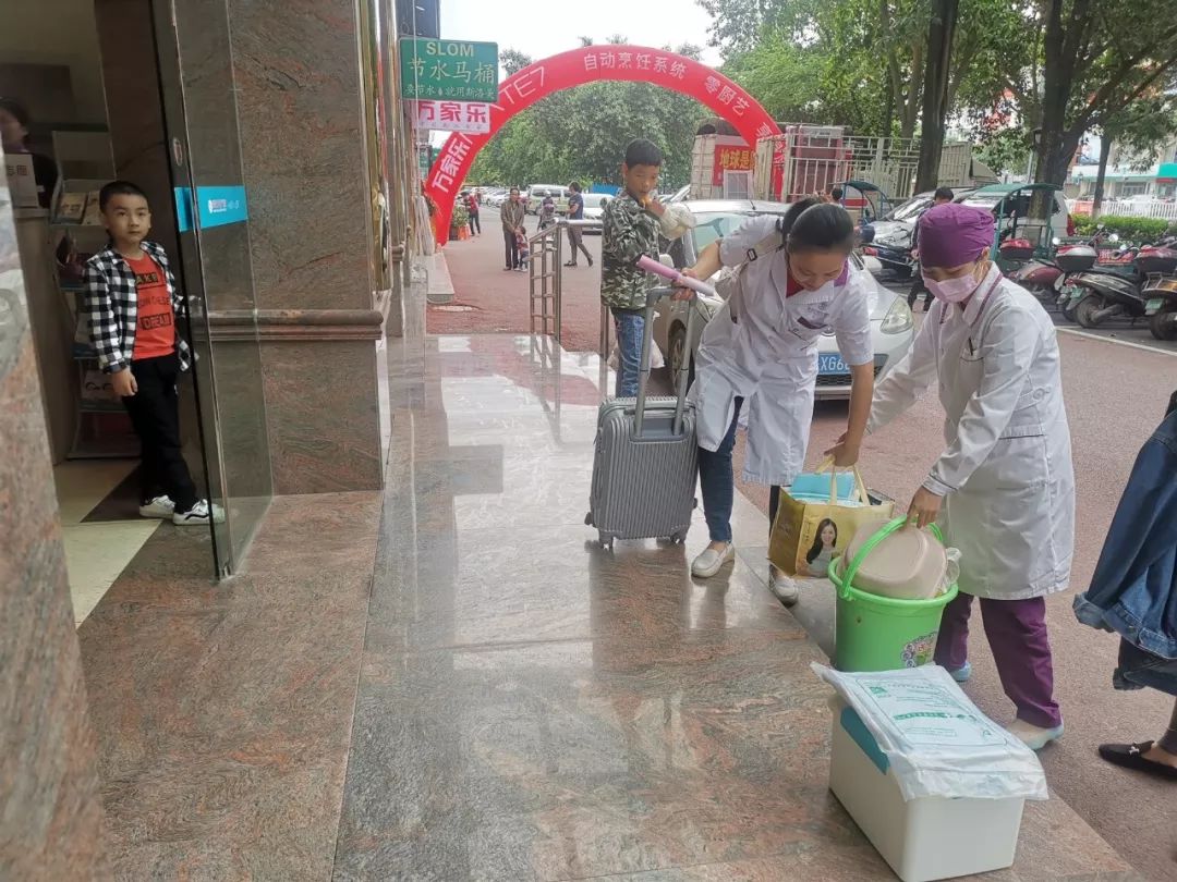 ▷ 医护人员主动帮忙搬行李物品到顾客的入住房间。
